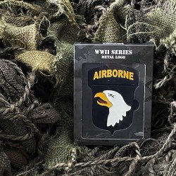 Logo en métal premium de la 101st Airborne Division. Un véritable objet de collection pour les amateurs. Agréable à ajouter à une collection de la Seconde Guerre Mondiale, à monter sur un véhicule de la Seconde Guerre Mondiale, ou tout simplement à collectionner en mémoire des héros de la 101st Airborne Division.
