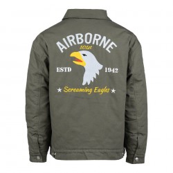 La veste Airborne originale est inspirée de l’iconique Worker Jacket. Au dos de la veste, on retrouve le logo Airborne 101st. La division Airborne, également appelée « Screaming Eagles », est une unité d’élite de l’armée américaine. Elle s’est rendue célèbre pendant la Seconde Guerre mondiale lors du débarquement de Normandie et à Bastogne, et est aujourd’hui spécialisée dans les opérations aéroportées rapides.